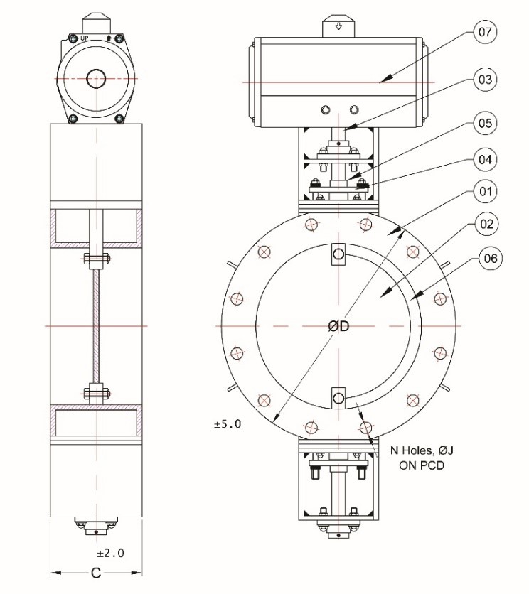 | Valve Type | Centric Disc Damper Valve Double flange |